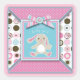 Coelho doce com bolinhas sobre impressões de pontos de novidade e um botão de arco.