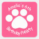 Adesivo Quadrado PAWty de Aniversário Personalizável - Rosa