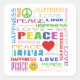 Paz Amor Felicidade palavras em várias cores e fontes. Símbolo de paz, forma de coração e smiley face todos se combinam para um presente feliz, amoroso e pacífico!