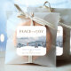 Personalize esta linda etiqueta com uma requintada cena de floresta em aquarela azul com raposa brincando na neve, apresentando a frase "Paz e Alegria" em uma mistura de caligrafia dourada manuscrita e tipografia de bloco. Duas seções de texto na parte inferior para sua mensagem personalizada. Parte de nossa coleção "Natal em Aquarela Azul e Prata" com uma variedade de produtos coordenados disponíveis.