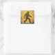 Um adesivo de Pé Grande quadrado. Uma silhueta de Pé Grande em uma floresta estilizada.
