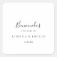 Esta pegatina cuadrada bienvenida de boda Española es perfecta para una boda rústica. El diseño, sencillo y elegante, apresenta una tipografía clásica y linda en blanco y negro. Está de acordo com as boas intenções para los bolsos de bienvenida y las bodas de Destino.