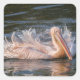 Um majestoso pelicano flutua graciosamente sobre a água, suas penas elegantes brilhando com gotículas enquanto agita vigorosamente os restos de um mergulho recente. O contraste contra o fundo preto profundo acentua a elegância das gotículas de água captadas no ar médio, criando em movimento uma cena cativante da natureza.