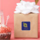 Adesivo Quadrado Pena de pavão dourada Obrigado em Azul Marinho