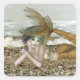 Uma sereia fica em uma praia rochosa pensando em alguém especial.