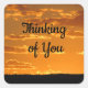 Este belo adesivo de fotos do pôr do sol é uma maneira simples de deixar alguém saber que você está pensando nelas. A paisagem na silhueta aparece no fundo com o céu laranja brilhante fazer na maioria desta foto. As longas nuvens horizontais são iluminadas pelo sol de pôr e fornecem um belo pano de fundo para "Pensar em Você". Todo texto pode ser personalizado fácil e rapidamente para se adequar ao seu desejo.