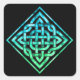 Um conjunto de adesivos quadrados de um design de nó celta azul-esverdeado com borda contra fundo preto.