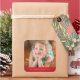 Belas vinhetas de Natal, vermelhas e brancas, com texto e foto que podem mudar. Fotografia © Storytree Studios, Stanford, CA