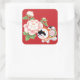 Adesivo Quadrado Pêonias e Cães Leões Padrão Kimono Japonês