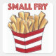 Apresenta uma ilustração original de uma caixa riscada vermelha e branca de deliciosas batatas fritas de comida rápida, com FRY SMALL em uma fonte vermelha divertida.