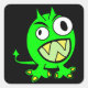 Engraçado cartoon do diabo em verde-neon. Esta pequena cara tem uma grande face redonda. Um olho é maior do que o outro fazer que ele parece de olho bom. Ele tem algumas presas afiadas e um pequeno demônio bonito.