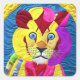 Esta é uma design de arte de um pequeno cobertor de leão como motif. São cores vibrantes e texturas divertidas seriam uma adição única e atraente para qualquer casa e certamente traria um sorriso para o rosto de todos.