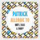 Alergias Múltiplas Personalizadas Para Crianças De Comida. Padrão de símbolos de alergia à comida - sem loucos, sem amendoins, sem glúten, sem peixe, sem laticínios e sem ovos com linhas pretas em fundo branco. O centro tem um círculo branco com texto para adicionar nome e alergênios. Os adesivos de alerta de alergia à comida são excelente de etiquetar comidas seguras, anexar a kits de remédios, snacks seguros, caixas de almoço. Editar para alterar a cor do texto ou o estilo da fonte. Designs de Lil Allergy Advocates www.lilallergyadvocates.com