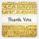 Um conjunto de adesivos amarelos quadrados "Obrigado" com hieróglifos antigos gravados na pedra. As palavras "Obrigado" são personalizáveis!