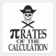 Um crânio com um dente de ouro e um adesivo ocular vestindo um pirata com duas canetas formando um "X" por baixo, em vez dos ossos cruzados típicos. No chapéu figura o número de "Pi" arredondado para cinco números. Abaixo do crânio e das travessias encontra-se a expressão "Pi-rate of the Calculation" As letras "Pi" na palavra Pi-rates foram substituídas pelo símbolo Pi.