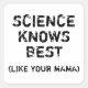Adesivo Quadrado Piada da ciência: A ciência sabe melhor (como sua