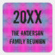 Comemore sua reunião familiar em estilo vibrante e empatado com este adesivo brilhante perfeito para selar envelopes de convite. Este adesivo apresenta um padrão neon de rosa e azul junto com seu nome de família e ano.
