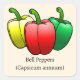 Pimentos de bélula em um adesivo amarelo quadrado.