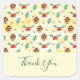 Muito obrigado... adesivos com um padrão fofo, com cones de pínus... e holly em um fundo de aquarela amarela com pequenos círculos brancos espalhados.