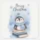 Esta ilustração adorável de Natal com aquarela apresenta um pinguim bonito vestindo um chapéu azul e cachecol aconchegante, sentado sobre uma pilha de livros. Cercado por flocos de neve delicados e por um fundo azul suave e nevado, ele faz um presente perfeito para amantes de livros, entusiastas do inverno ou como decoração festiva. Ideal para adesivos, posters, cartões de saudação e mais produtos de temas de férias!