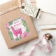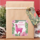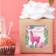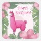 Pink Happy Smiling Lama, este design apresenta um lindo e adorável Lama Feliz Smiling Rosa rodeado por palmeiras verdes e flores tropicais cor-de-rosa.