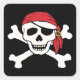 Crânio de animação fofo com dentes desaparecidos vestindo bandana vermelha, adesivo e ouro e bicos.