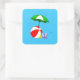 Adesivo Quadrado Piscina de praia Guarda-chuva Blue Waves Sticker