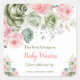Belo adesivo de chá de fraldas com arranjos florais verdes e cor-de-rosa. Perfeito para um chá de fraldas. As palavras podem ser alteradas para se adequarem aos seus próprios detalhes ou requisitos