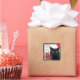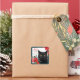 Neste adesivo, um lindo gato preto com olhos amarelos é emoldurado com buquês de poinsettia vermelha de cor d'água do Natal. Uma borda externa de verde azul correspondente rodeia o branco interior, e mais imagens de poinsettia estão no canto superior direito. O texto vermelho e lacrimogêneo diz "FELIZ ANO NOVO NATAL MERRY". Bonito para sua correspondência de Férias ou pacotes de presentes.