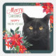 Adesivo Quadrado Poinsettia Border Black Cat Natal