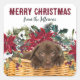 Adesivo Quadrado Poinsettia Chocolate Lab Puppy Natal