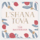 Os adesivos Rosh Hashanah, vermelhos, azuis e dourados, apresentam uma ilustração romântica de Shelby Allison.