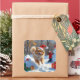 Adesivo Quadrado Pomerânia correndo em neve com chapéu de Natal
