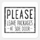 Adesivo Quadrado Por favor, deixe os pacotes na porta lateral, pres