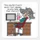 Engraçado design Stella com Stella na sua mesa, pés para cima, perguntando se o duro nunca matou ninguém, por que arriscar? Tema de trabalho humorístico, T-shirts, canecas, cartas, bolsas, ímãs, botões, chaveiros, ornamentos, capuzes e muito mais.