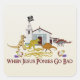 Deixar os dinossauros na arca com todos aqueles cristãos loucos era obrigado a acabar mal. Vejam os dinossauros que abrigam uma bandeira pirata na cruz da igreja, quebrando o pão e o vinho, e se preparando para jantar peixe. As palavras dizem: "Quando Jesus Pôs Vai Mal".