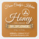Ícone de abelha simples e texto em letra cursiva branca sobre um fundo âmbar dourado para criar rótulos de alimentos de mel caseiro. Texto personalizado para o nome da sua cozinha caseira ou apicultor, tipo de mel "100% Orgânico" ou "Totalmente Natural" e informações de contato.