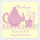 Um bule de chá e uma xícara de chá cor-de-rosa com adesivo de margarida para elogiar nossos convites. Personalize o texto e altere a cor do plano de fundo conforme preferido.