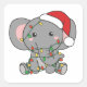 O elefante no Natal com luzes de fadas. Animais engraçados com presentes e neve nas férias. Uma doce saudação de Natal. Os elefantes são animais bonitos e perfeitos para o Natal.