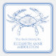 Adesivo Quadrado Preppy Blue e White Crab Bookplate
