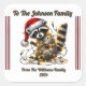 Um guaxinim delicioso, vestindo um chapéu festivo de Papai Noel, brincalhão se entrelaça com uma corda de luzes quentes enquanto pregava um presente belamente embrulhado.