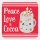 Adicione um toque caprichoso aos seus presentes de Natal ou correspondência com estes adoráveis autocolantes de férias vermelhos e brancos. A design apresenta o ditado bonito, "Paz, amor e cacau" - referindo-se a todas as coisas que nos aquecem durante o feriado. Ele também apresenta uma ilustração kawaii de uma caneca de chocolate quente com alguns marshmallows brincalhões a piscar na espuma. Adoráveis e festivos adesivos que incorporam o espírito lúdico da estação.