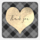 Elegante obrigado listrado preto e branco você enfia um adesivo quadrado com um coração bege ouro para uma festa de aniversário clássica, para comemorações chic, e para letras elegantes.