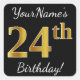 Adesivo Quadrado Preto, Faux Dourado 24.º aniversário + nome person