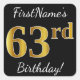 Adesivo Quadrado Preto, Faux Dourado 63º Aniversário + Nome Persona