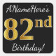 Adesivo Quadrado Preto, Faux Dourado 82º Aniversário + Nome Persona