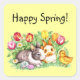 Primavera Stickers : Cena de Primavera bonito com dois coelhos coelhos coelhos, tulipas e margaridas, um pintinho de bebê fofo, ovos decorados, e as palavras, Happy Primavera! A cor de fundo e o texto são personalizáveis. Uma localização na Web melhorada por WebzPickz e 369.