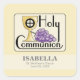 Celebrar uma Primeira Comunhão com esta bela imagem de uva e uma xícara para o vinho e os hospedeiros. Criado sobre um fundo amarelo de cor dourada, é o presente perfeito, lembrança, doação e partido essencial para dar uma Primeira Comunhão para o menino, a menina ou o fazer adulto, sua Primeira Comunhão!