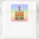 Este design de autocolante quadrado com tema de aniversário otimista e alegre apresenta uma representação em estilo cartoon de um bolo de aniversário de três níveis com uma vela em forma de número no topo mostrando a idade "1", juntamente com a mensagem "PRIMEIRO ANIVERSARIO FELIZ", e um nome de destinatário editável. O fundo apresenta um espectro multicolorido de arco-íris pastel inspirado em gradiente. Os autocolantes temáticos de aniversário coloridos como estes podem ser emitidos ou usados numa festa de aniversário que comemora o primeiro aniversário de alguém, ou talvez usados na preparação de convites ou presentes para tal evento. [~Z0000624]