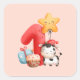 Adesivo Quadrado Primeiro aniversario Feliz de Vaca